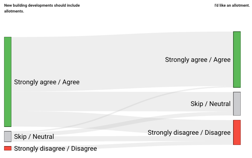 Comparing those votes for ‘New building developments should include allotments’ with votes for ‘I’d like an allotment[/caption]
